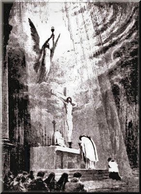 This is the essence of my Heavenly Liturgy sketch. And again, if the goal is to show the fusion of Heaven & Earth at Mass, the above detail would go well with Ariel Agemian's evergreen image of the Liturgy on Earth: